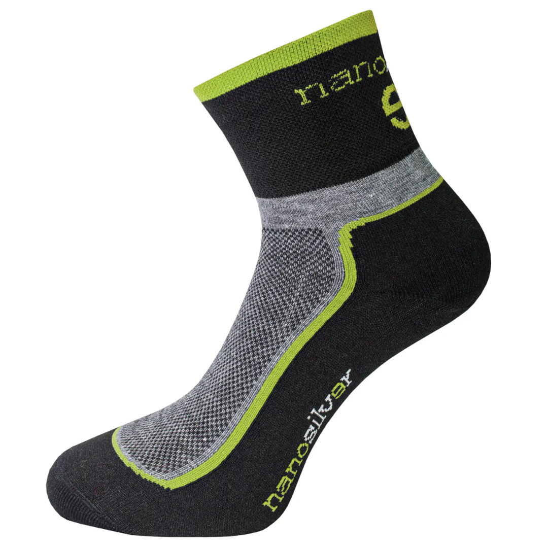 Cyklo ponožky se stříbrem COOLMAX jsou funkční ponožky určené pro cyklistiku i jinou aktivní sportovní činnost. Materiál s technologií COOLMAX pomáhá dobře odvádět vlhkost od pokožky, takže nohy zůstávají suché a komfortní i při vyšší fyzické zátěži. Vlákná se stříbrem omezují množení bakterií a přispívají ke snížení nepříjemného zápachu nohou. Ponožky mají anatomický střih, který dobře sedí na noze bez sklouzávání, a elastický lem, který zajišťuje pohodlné nošení bez škrcení. Tyto cyklo ponožky oceníte zejména při delších jízdách na kole, běhu nebo jiných aktivitách, kdy potřebujete suché a pohodlné nohy.