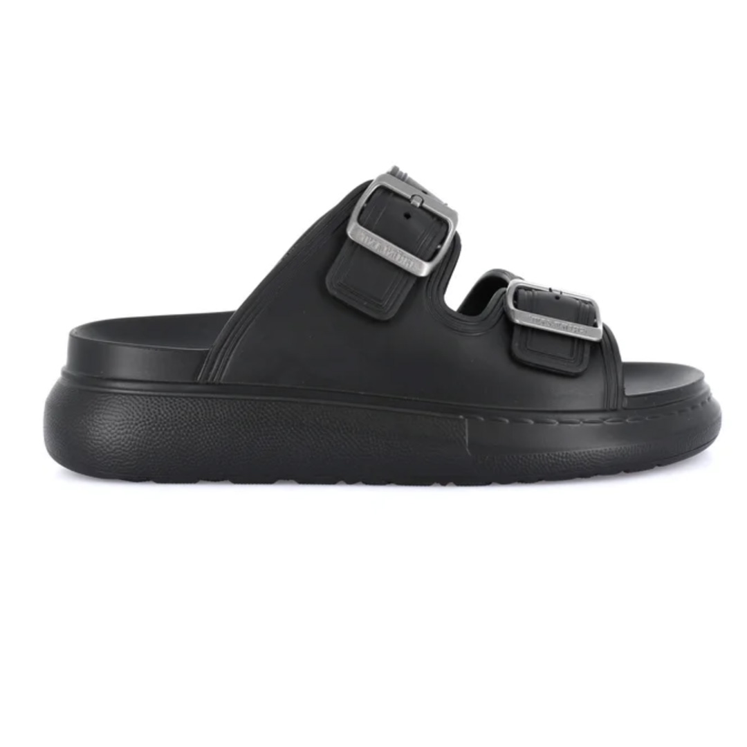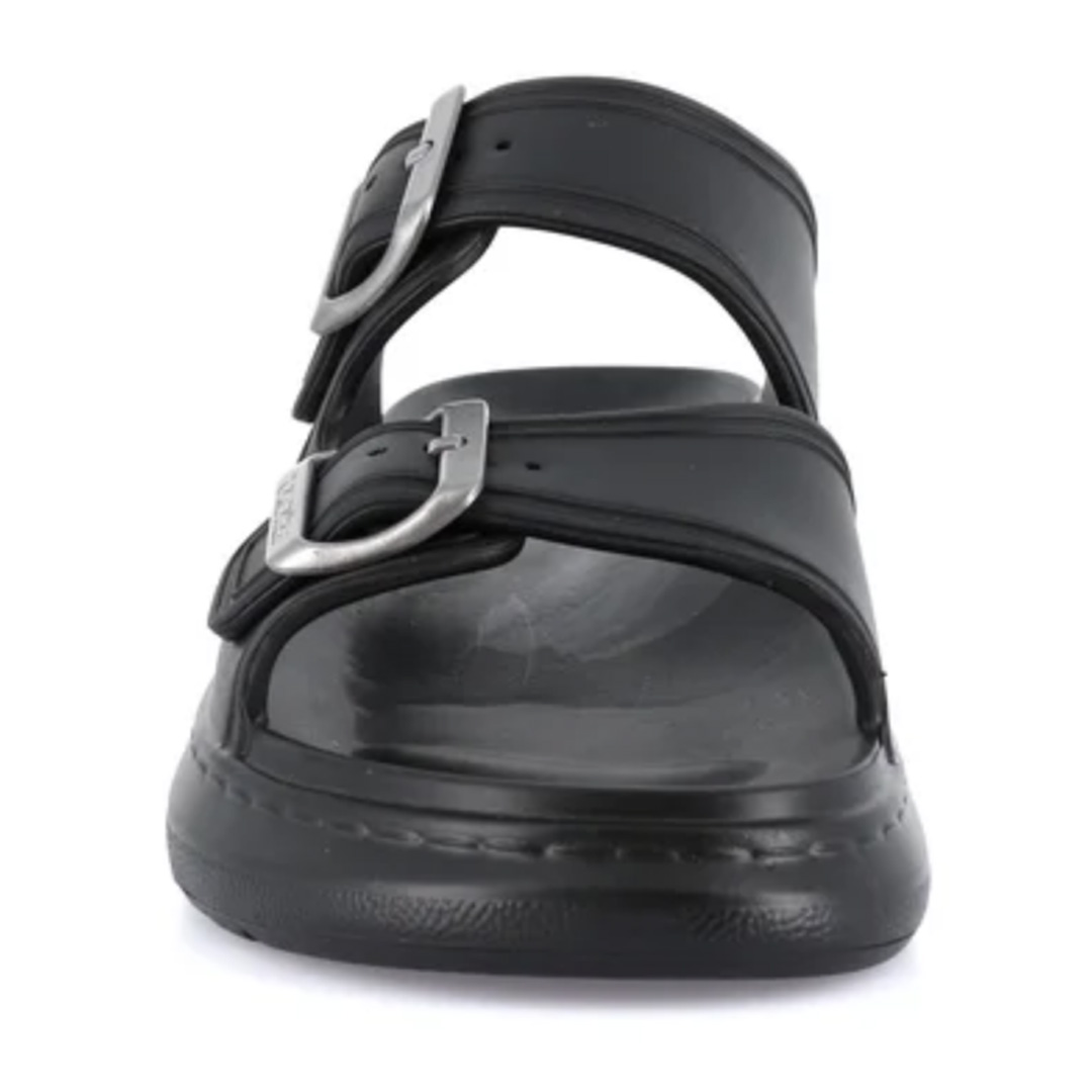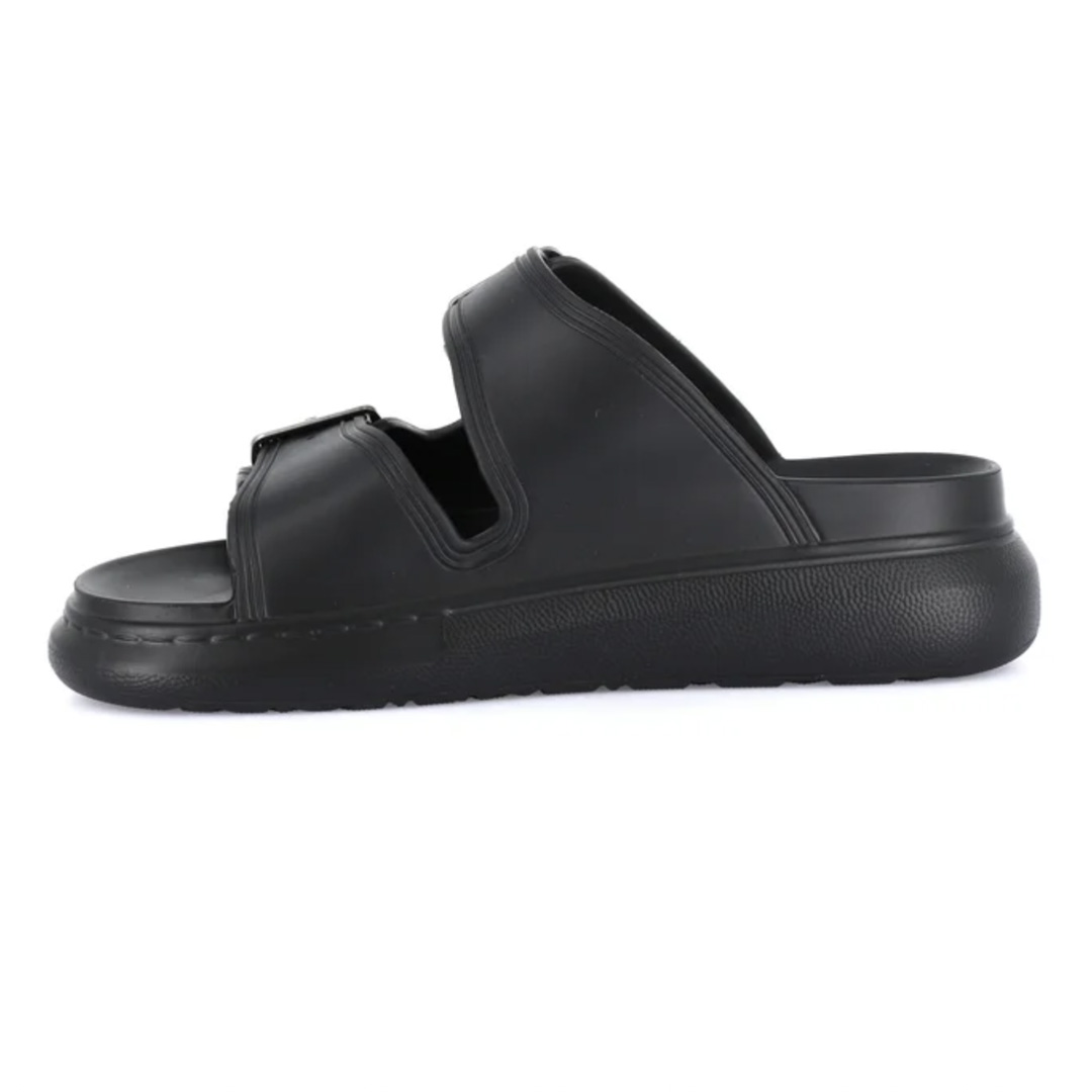 Dámské pantofle Grünland Dala CI1906 představují moderní a mimořádně lehkou letní obuv vhodnou k vodě, do wellness i pro běžné každodenní nošení. Tento model je vyroben z kvalitního materiálu EVA, který vyniká nízkou hmotností, pružností a vysokou odolností vůči vlhkosti. Materiál je voděodolný, hygienický, bez zápachu a velmi snadno omyvatelný, což z něj činí ideální volbu pro teplé letní dny nebo pobyt u bazénu. Dvojité pásky s nastavitelnými přezkami umožňují pohodlné přizpůsobení obuvi tvaru chodidla. Lehká platformová konstrukce s výškou přibližně 4 cm dodává modelu moderní vzhled a zároveň zachovává stabilitu při chůzi. Pevná syntetická stélka poskytuje komfortní oporu chodidlu a podešev z EVA materiálu dobře tlumí došlap. Flexibilní provedení podporuje přirozený pohyb nohy a zajišťuje pohodlí při celodenním nošení. Díky současnému chunky designu lze model snadno kombinovat s letním i volnočasovým outfitem.