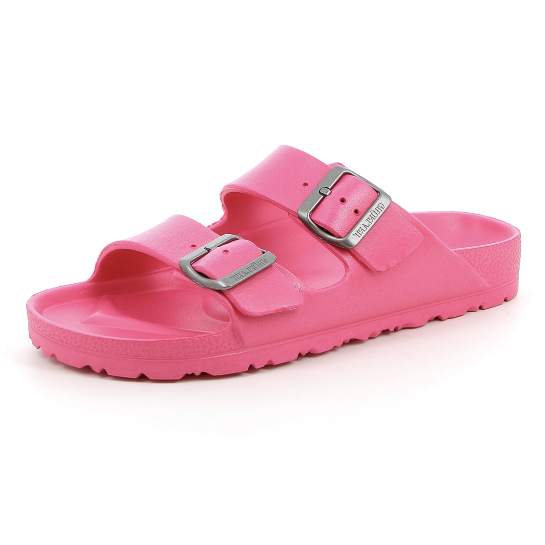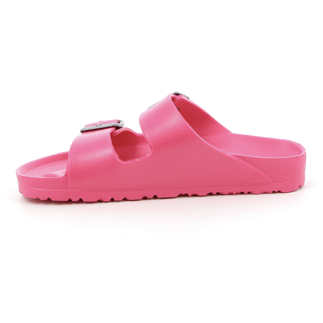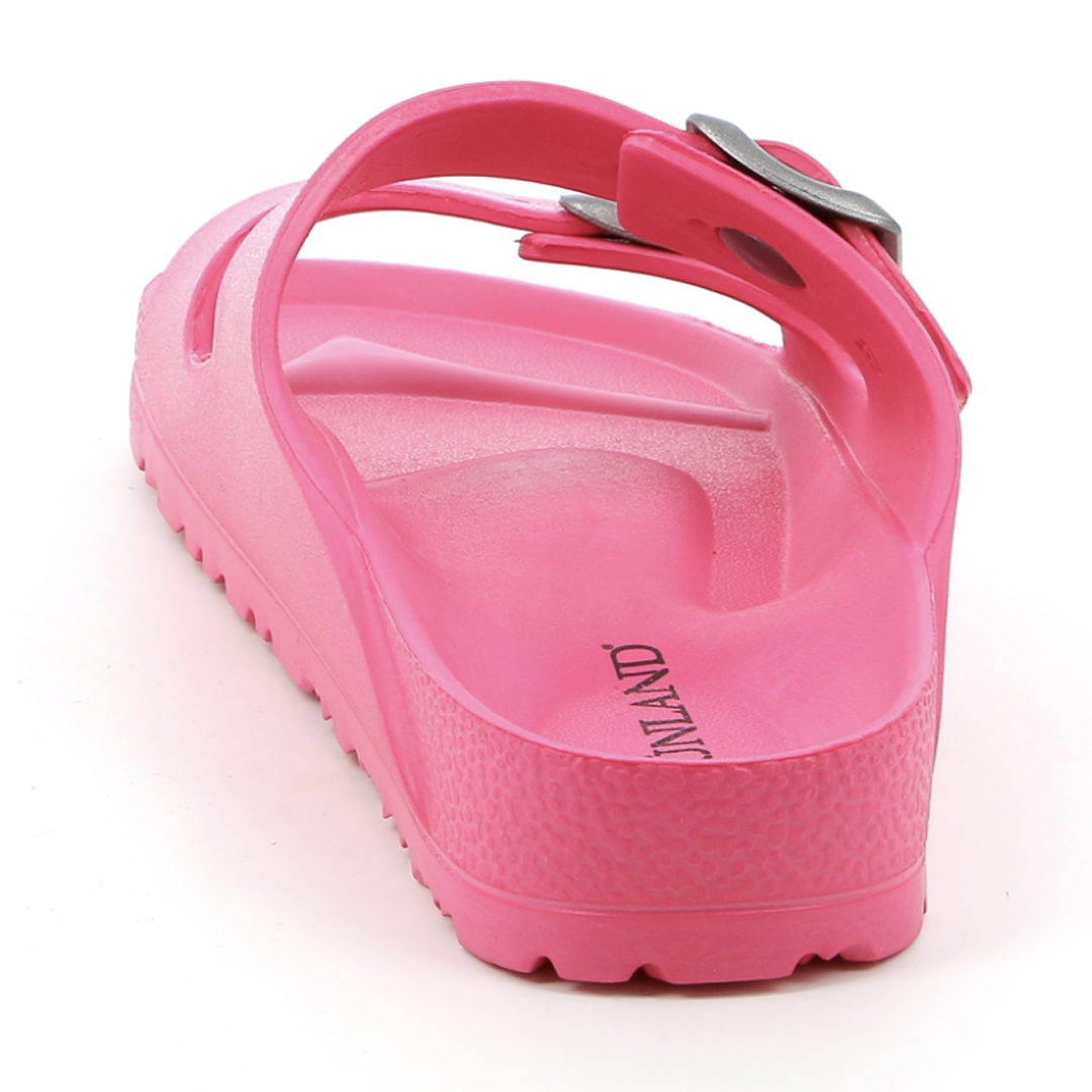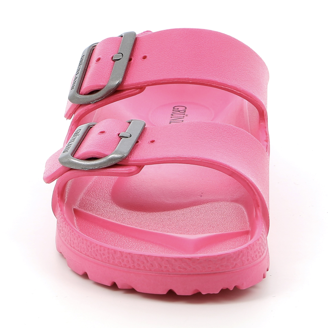 Dámské pantofle Grünland CI2612 ve fuchsiové barvě zaujmou svým výrazným vzhledem a lehkou konstrukcí. Jsou vyrobeny z jednoho kusu EVA materiálu – ten je pružný, voděodolný, bez zápachu a extrémně lehký, což z nich činí ideální obuv pro letní dny, pobyt u vody nebo pohodlné nošení doma. Díky dvěma širokým páskům s přezkami se obuv snadno přizpůsobí chodidlu, zatímco tvarovaná stélka poskytuje základní oporu a pohodlí. Protiskluzová podešev zaručuje bezpečný krok i na mokrém povrchu. Grünland CI2612 je perfektní volbou pro ženy, které hledají výraznou, praktickou a snadno udržovatelnou obuv s letní energií.
