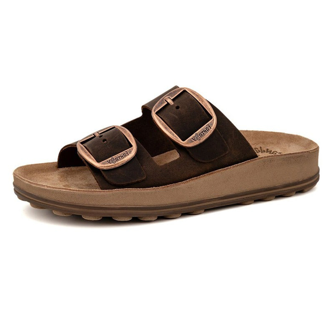 Sandály Desponia v odstínu taupe z kolekce Fantasy Sandals spojují přírodní eleganci s maximálním komfortem. Model zaujme svým čistým designem s dvěma širokými pásky s kovovými přezkami, které umožňují individuální nastavení přes nárt. Vrchní část je zdobena jemným vzorem připomínajícím rafii, díky čemuž sandály působí přirozeně a zároveň stylově – skvěle se hodí jak k šatům, tak ke kalhotám nebo šortkám. Stélka je anatomicky tvarovaná, měkce polstrovaná a navržena tak, aby poskytovala oporu klenbě i patě po celý den. Technologie Flexsole zajišťuje výjimečnou lehkost, pružnost a pohodlný došlap i při delší chůzi. Protiskluzová podrážka navíc zajišťuje jistotu kroku na různých površích. Despoina je skvělou volbou pro ženy, které hledají kombinaci elegance, praktičnosti a zdravého pohodlí.