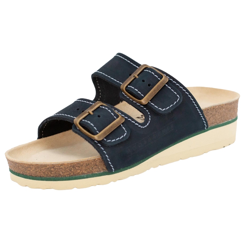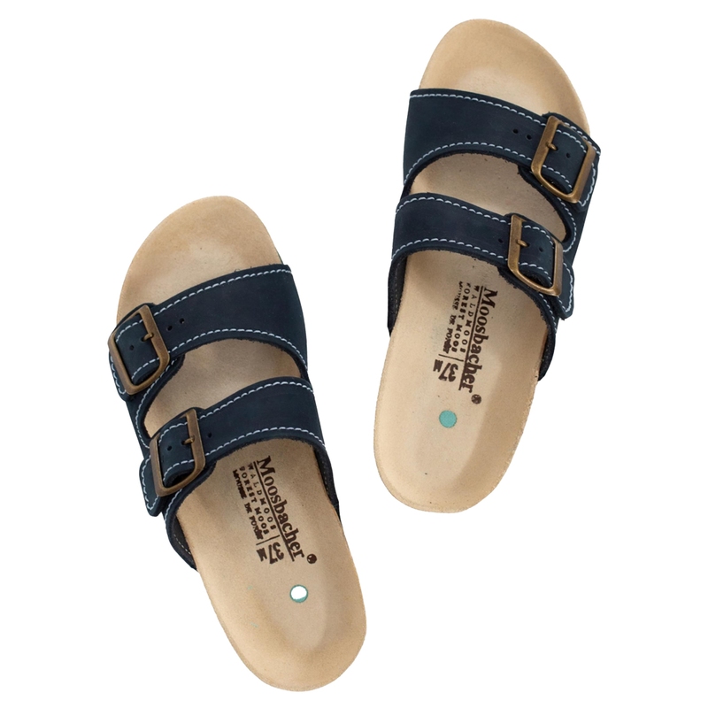 Obuv Moosbacher Farn modrá jsou dámské zdravotní pantofle s dvoupáskovým designem v modrém „jeans“ odstínu, které jsou ideální volbou pro volný čas nebo jako pohodlná přezůvka doma či na pracovišti. Tento model je vyroben z kvalitní nubukové kůže, která je odolná a příjemná na dotek, a díky nastavitelným páskům si je můžete upravit podle svého tvaru nohy pro lepší fit. Širší střih a anatomicky tvarovaná stélka pomáhají přirozenému pohybu chodidla a přispívají k celkovému komfortu při nošení během celého dne. Značka Moosbacher je známá svou patentovanou zdravotní stélkou, která kombinuje materiály jako mechu, korek a latex pro lepší podporu nožní klenby, tlumení nárazů a zdravý pocit při chůzi. Tento model tak při nošení poskytuje stabilitu a pohodlí, a zároveň díky neutrálnímu designu snadno doplní různé casual i domácí outfity. Obuv Farn jeans je praktickou volbou, pokud hledáte kombinaci zdravého komfortu a stylového vzhledu pro každodenní použití.