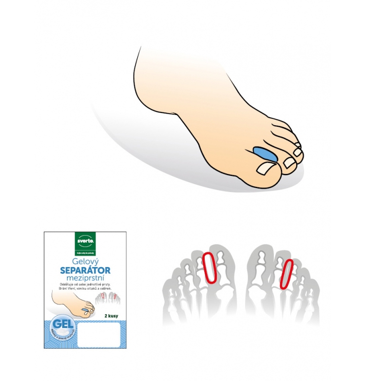 Gelový separátor meziprstní Roztahuje a odděluje prsty a chrání bolestivá místa. Zabraňuje poškozování dvou prstů vedle sebe. Různé velikosti pro použití mezi libovolné prsty, měkký a jemný elastický gel. Materiál: polymerní gel pro medicinální použití Balení obsahuje 2 kusy. V košíku uveďte do poznámky, prosím, svou velikost.