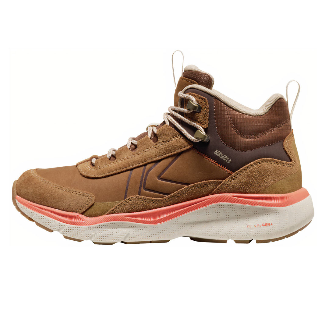 Dámské trekové boty Keen Leiki Leather Mid WP představují moderní outdoorovou obuv navrženou pro aktivní pohyb v přírodě i každodenní turistiku. Svršek je vyroben z kvalitní přírodní hovězí usně s ekologickým certifikátem v kombinaci s textilními prvky, což zajišťuje ideální rovnováhu mezi odolností, prodyšností a flexibilitou. Díky voděodolné a zároveň prodyšné membráně KEEN.DRY zůstávají nohy v suchu i při nepříznivém počasí, zatímco textilní podšívka podporuje optimální cirkulaci vzduchu uvnitř obuvi. Vyšší kotníkový střih poskytuje lepší stabilitu a oporu při chůzi v terénu, přičemž klasické šněrování umožňuje přesné přizpůsobení chodidlu. Mezipodešev s technologií Luftcell (vzduchem vstřikovaná struktura) zajišťuje efektivní tlumení nárazů a celodenní komfort při chůzi, zatímco stabilizační klenek S3 zvyšuje jistotu pohybu i na nerovném povrchu. Gumová podešev KEEN.ALL-TERRAIN s vícesměrným vzorkem poskytuje spolehlivou trakci na různých typech terénu a zvyšuje bezpečnost při pohybu v přírodě. Antibakteriální technologie Eco Anti-Odor omezuje vznik zápachu a přispívá k hygieně při dlouhodobém nošení. Model Leiki Leather Mid WP je ideální volbou pro ženy, které hledají lehkou, odolnou a technicky propracovanou obuv vhodnou pro turistiku, výlety i aktivní volný čas.