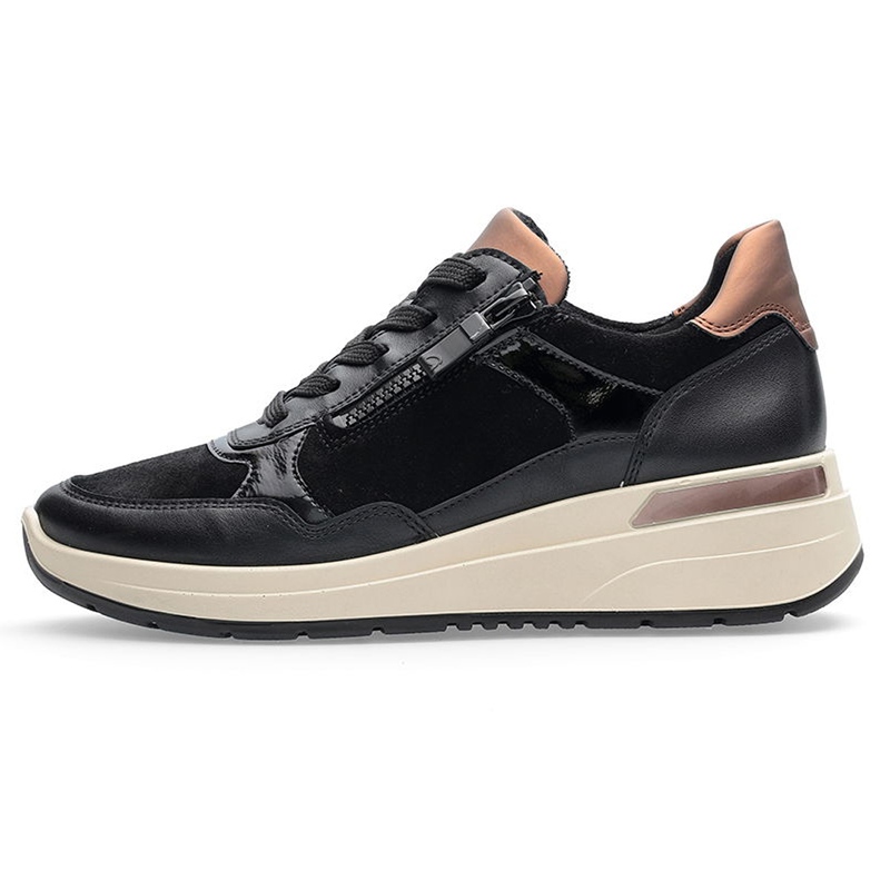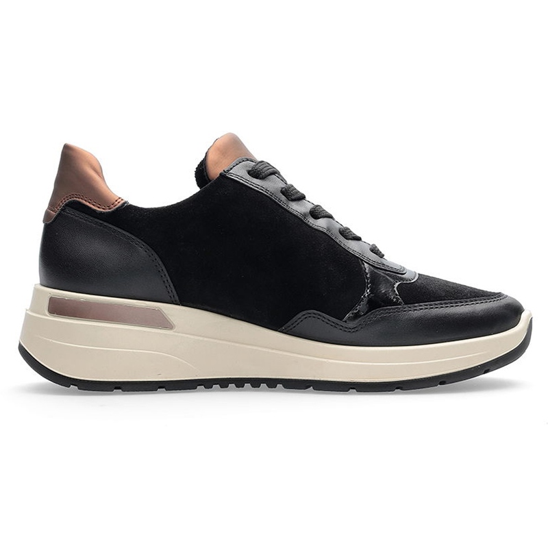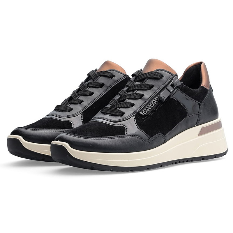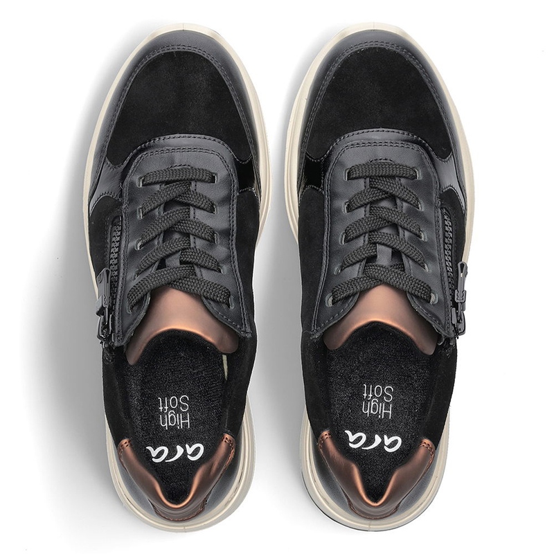 Dámské tenisky ara v černé barvě jsou ideální volbou pro ženy, které hledají kombinaci pohodlí a moderního designu. Svršek je vyroben z kvalitní kůže, která zajišťuje odolnost a snadnou údržbu. Nastavitelné šněrování umožňuje individuální přizpůsobení obuvi tvaru nohy, poskytující optimální podporu a komfort při chůzi. Obuv je vybavena vyjímatelnou stélkou, která umožňuje použití vlastní ortopedické vložky a přispívá k celkovému pohodlí. Flexibilní podešev s tlumením nárazů zajišťuje stabilitu a pohodlí při chůzi. Tyto tenisky jsou ideální pro každodenní nošení, volnočasové aktivity i procházky ve městě, kdy chcete spojit styl a funkčnost v jedné obuvi.