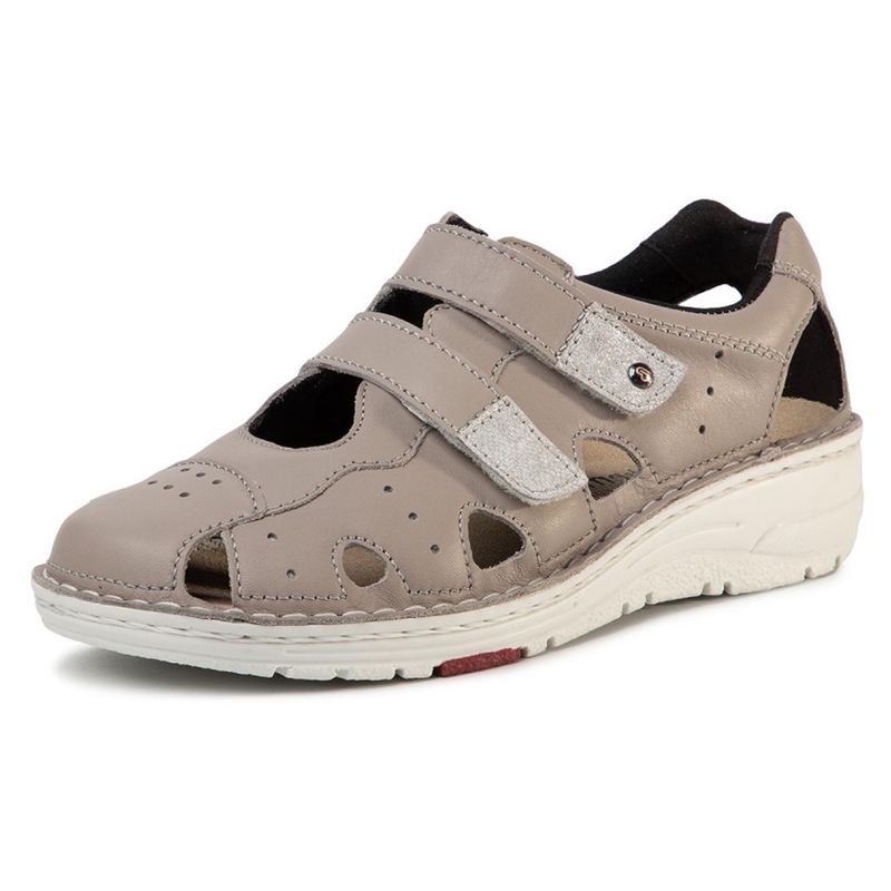 Dámská sandálová obuv Berkemann představuje spojení elegance a pohodlí, ideální pro aktivní ženy v teplém počasí. Tyto šik sandály jsou navrženy s ohledem na prodyšnost a podporu nohy díky kvalitnímu koženému svršku s několika výřezy a nastavitelnými pásky na suchý zip, které zajišťují jednoduché obouvání a výbornou přizpůsobivost. Anatomicky tvarovaná stélka zajišťuje pohodlné nošení celý den, a odolná polyuretanová podrážka poskytuje stabilní oporu a dlouhodobou odolnost. Elegance a funkčnost jdou u těchto sandálů ruku v ruce, což je činí ideální volbou pro ženy, které hledají kvalitu a pohodlí ve své letní obuvi.