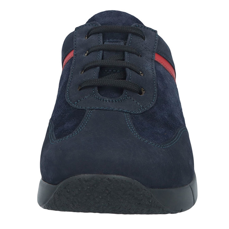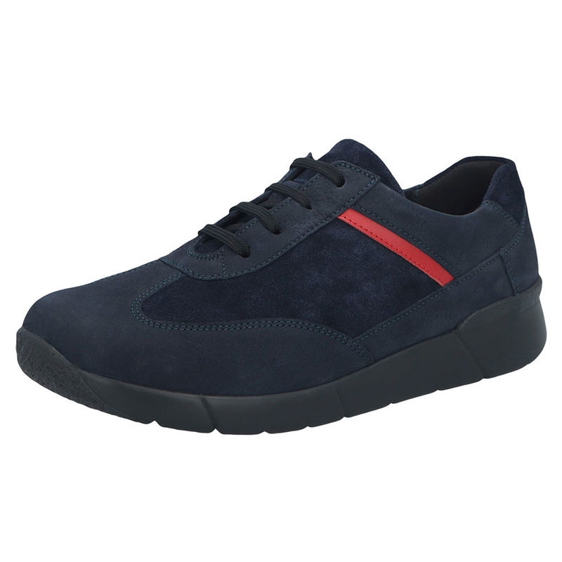 Lehká a flexibilní podešev s výborným tlumením nárazů šetří klouby a podporuje přirozený pohyb chodidla. Vnitřní prostor boty nabízí dostatek místa i pro citlivější nebo širší chodidla a je vhodný pro použití individuálních ortopedických vložek. Díky nadčasovému tmavě modrému provedení s jemným barevným detailem se obuv snadno kombinuje s volnočasovým i ležérně pracovním oděvem, a stává se tak spolehlivou volbou pro každodenní nošení.