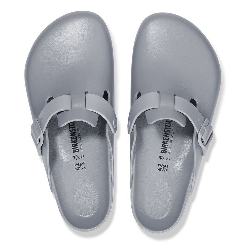 Birkenstock Boston EVA představuje lehkou a voděodolnou variantu oblíbených zástupců této značky. Vyrobena z jednoho kusu materiálu EVA (ethylen-vinylacetát), tato obuv nabízí flexibilitu, odolnost vůči vodě a snadnou údržbu. Anatomicky tvarovaná stélka poskytuje vynikající podporu chodidla, což činí tuto obuv ideální pro každodenní použití, jako je nošení před a po cvičení či během volných dnů. Nastavitelný pásek s tónovanou přezkou umožňuje individuální přizpůsobení pro optimální pohodlí. Díky své lehkosti a odolnosti je Boston EVA ideální volbou pro ty, kteří hledají pohodlnou a praktickou obuv pro každodenní nošení.