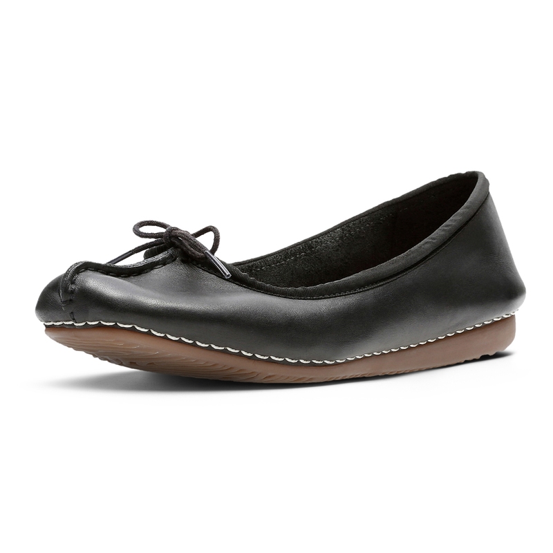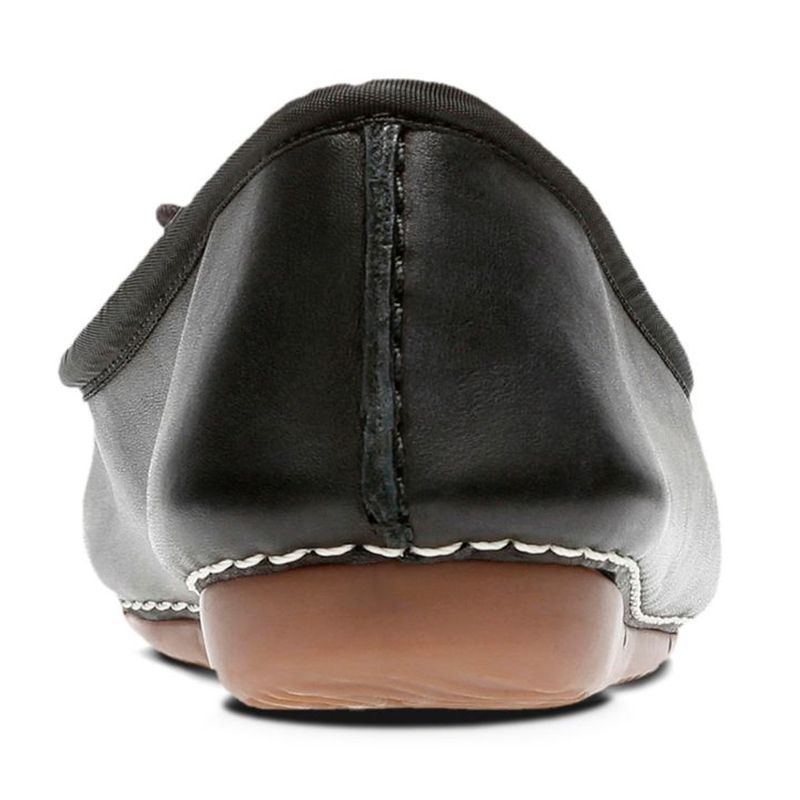 Dámské baleríny Clarks Freckle Ice v černé kůži představují elegantní spojení klasického designu a moderního pohodlí. Jemná mašlička na svršku spolu s decentním prošíváním dodávají obuvi minimalistický a sofistikovaný vzhled. Svršek z prvotřídní kůže zajišťuje odolnost a dlouhou životnost, zatímco prodyšná kožená stélka poskytuje měkké odpružení a komfort po celý den. Lehká a flexibilní podešev z termoplastické gumy (TPR) s výškou podpatku 15 mm zaručuje stabilitu a trakci na různých površích. Díky svému nadčasovému designu a kvalitnímu zpracování jsou baleríny Freckle Ice ideální volbou pro každodenní nošení i pro formálnější příležitosti.
