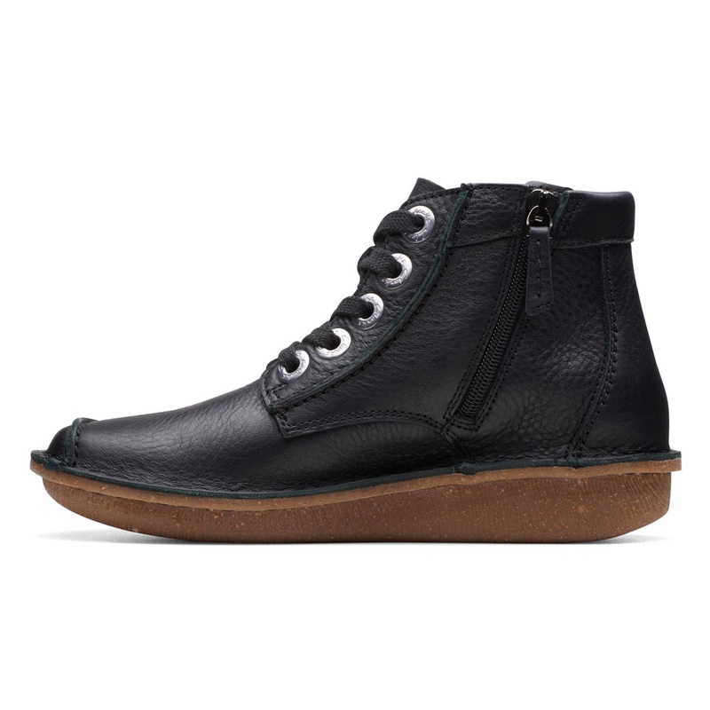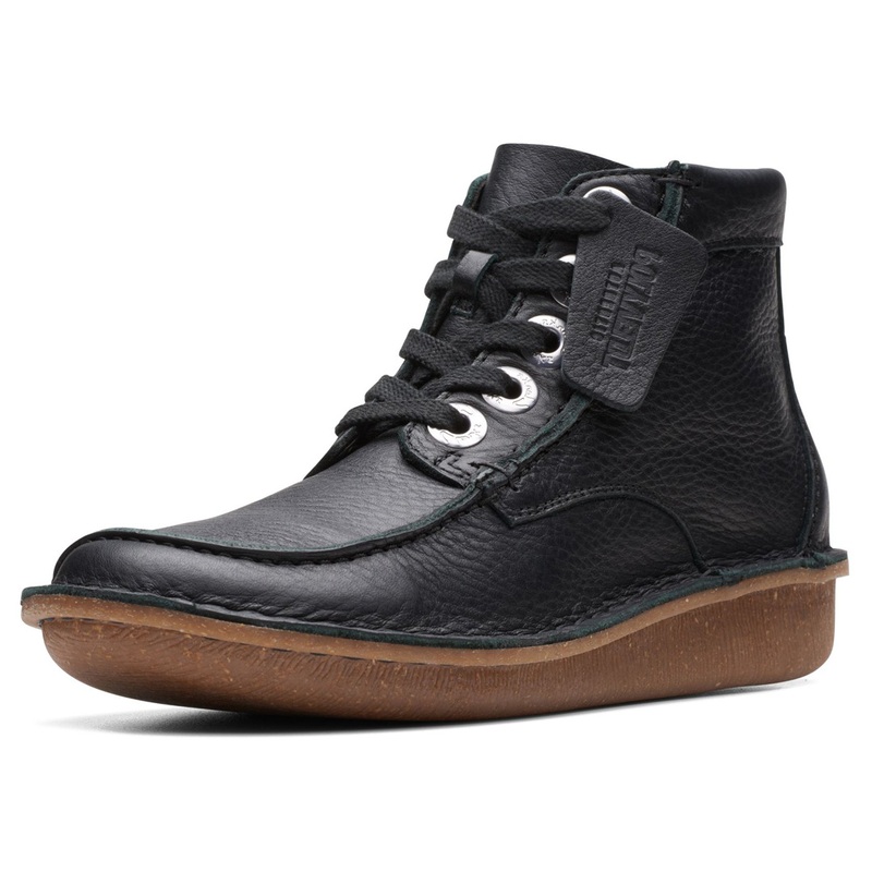 Dámské kotníkové boty Clarks Funny Cedar v černé kůži představují elegantní spojení klasického designu a moderního komfortu. Svršek z prvotřídní kůže dodává botám sofistikovaný vzhled a zajišťuje dlouhou životnost. Decentní prošívání a minimalistický design umožňují snadné kombinování s různými outfity, ať už pro formální příležitosti nebo každodenní nošení. Vnitřní část boty je vybavena měkkou podšívkou, která zvyšuje pohodlí při nošení. Lehká a flexibilní podešev zajišťuje stabilitu a trakci na různých površích, což činí tyto boty ideální volbou pro ženy hledající stylovou a pohodlnou obuv.