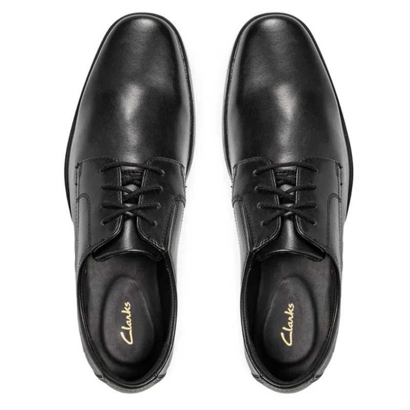 Elegantní černé kožené polobotky od značky Clarks, model Howard Walk, představují perfektní volbu pro muže hledající nadčasový styl a pohodlí. Tyto šněrovací boty jsou vyrobeny z vysoce kvalitní černé hladké usně, která dodává luxusní vzhled a dlouhou životnost.