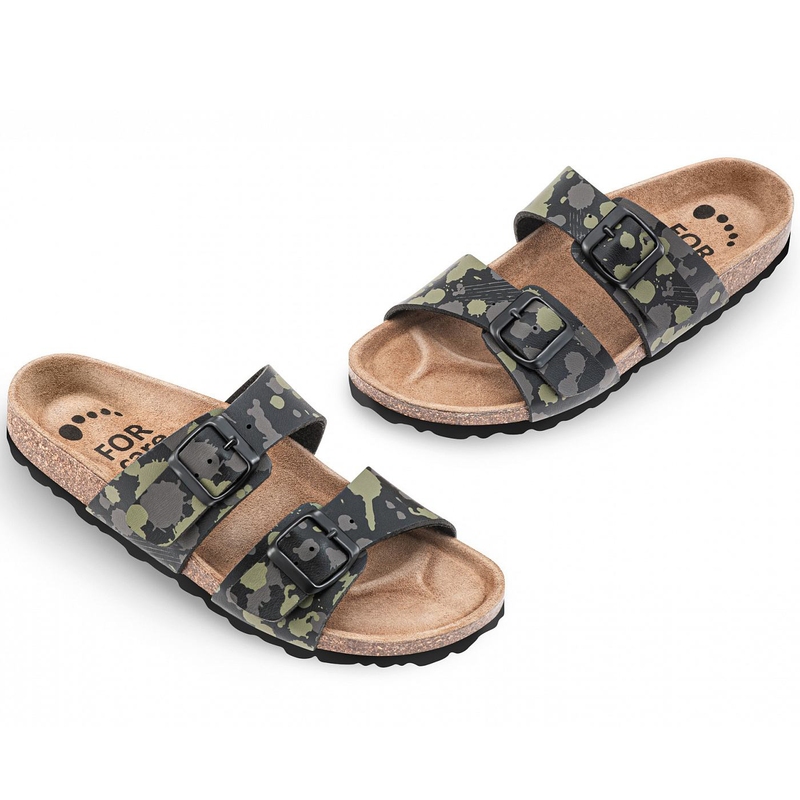 Zdravotní pantofle FORcare 203037 v černé barvě s originálním potiskem skvrn představují ideální kombinaci pohodlí, kvality a moderního vzhledu. Svršek z odolného syntetického materiálu Flor je z vnitřní strany podšitý prodyšnou textilií, která zajišťuje příjemný pocit i při celodenním nošení. Dva suché zipy umožňují snadné a přesné přizpůsobení obuvi podle šířky nohy.