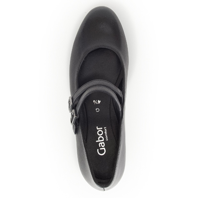 Tento model lodiček značky Gabor představuje elegantní a nadčasový design. Lodičky jsou vyrobeny z kvalitní černé usně, která zaručuje pohodlí i odolnost. Dva tenké pásky s přezkami přes nárt dodávají botám retro nádech a zároveň poskytují lepší fixaci nohy. Středně vysoký blokový podpatek zajišťuje stabilitu a komfort při nošení po celý den. Tento model je ideální volbou pro formální příležitosti, kancelářské outfity i večerní události, kde je potřeba kombinovat styl s pohodlím.