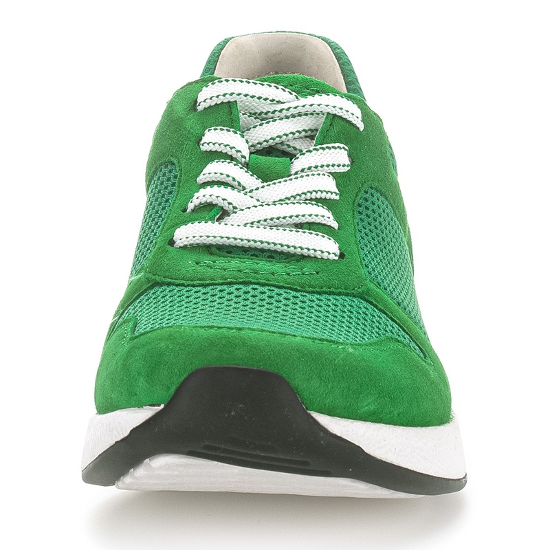 Dámské tenisky Gabor v zelené barvě představují ideální spojení pohodlí a moderního designu. Svršek je vyroben z kvalitní usně v kombinaci s textilními prvky, které zajišťují prodyšnost a lehkost obuvi. Nastavitelné šněrování umožňuje individuální přizpůsobení tvaru nohy, poskytující optimální podporu a komfort při každém kroku. Obuv je vybavena recyklovatelnou vyjímatelnou stélkou, která přispívá k udržitelnosti produktu. Flexibilní podešev s tlumením nárazů zajišťuje stabilitu a pohodlí při chůzi. Tyto tenisky jsou ideální pro každodenní nošení, volnočasové aktivity i procházky ve městě, kdy chcete spojit styl a funkčnost v jedné obuvi.