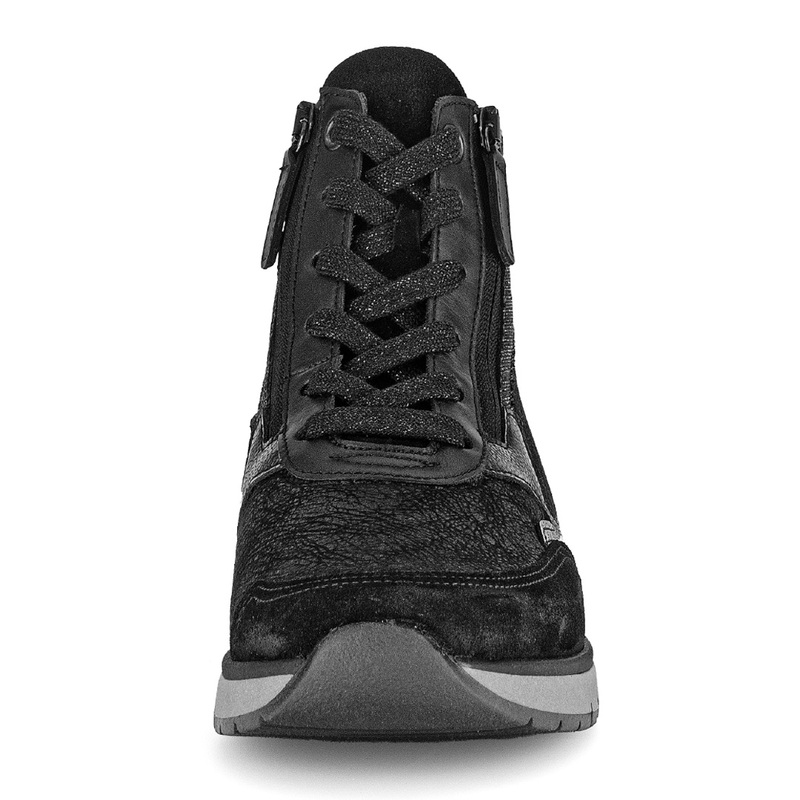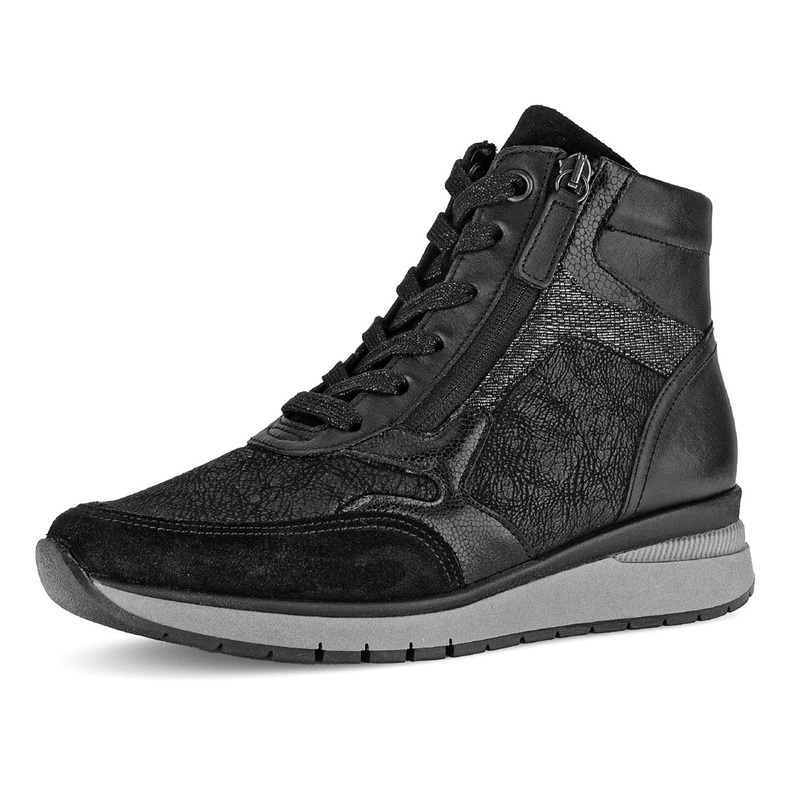 Tyto stylové kotníkové boty značky Gabor v elegantní černé barvě kombinují pohodlí a módní vzhled. Díky šněrování a postrannímu zipu jsou snadno nazouvatelné a přizpůsobí se tvaru chodidla. Boty jsou vyrobeny z kvalitních materiálů, což zajišťuje jejich odolnost a komfort i při delším nošení. Lehce vyvýšená podrážka poskytuje stabilitu a pohodlí, zatímco detaily z různých textur dodávají botám moderní vzhled. Ideální volba pro ženy, které hledají stylovou a praktickou obuv na každý den.