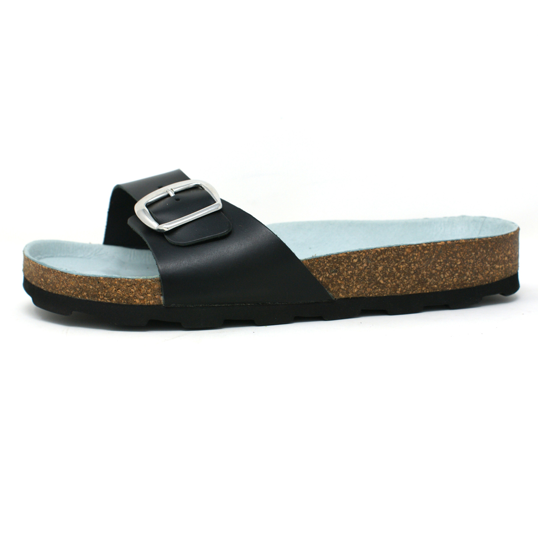 Vlastnosti: anatomicky tvarovaná stélka korková podešev pro přirozený došlap nastavitelný jednopásek s kovovou přezkou lehká a pohodlná konstrukce vhodné pro každodenní nošení