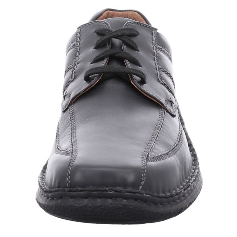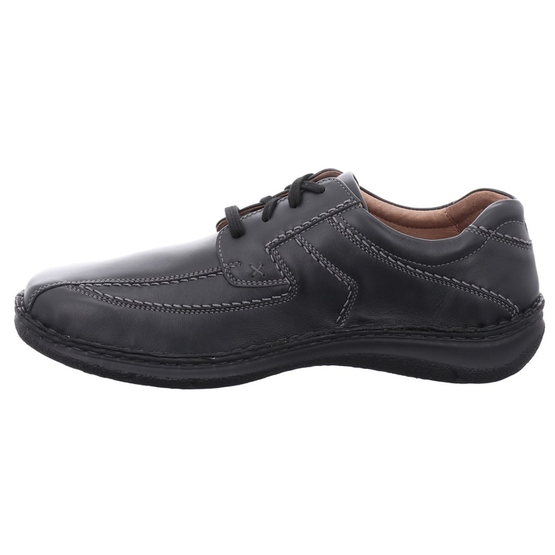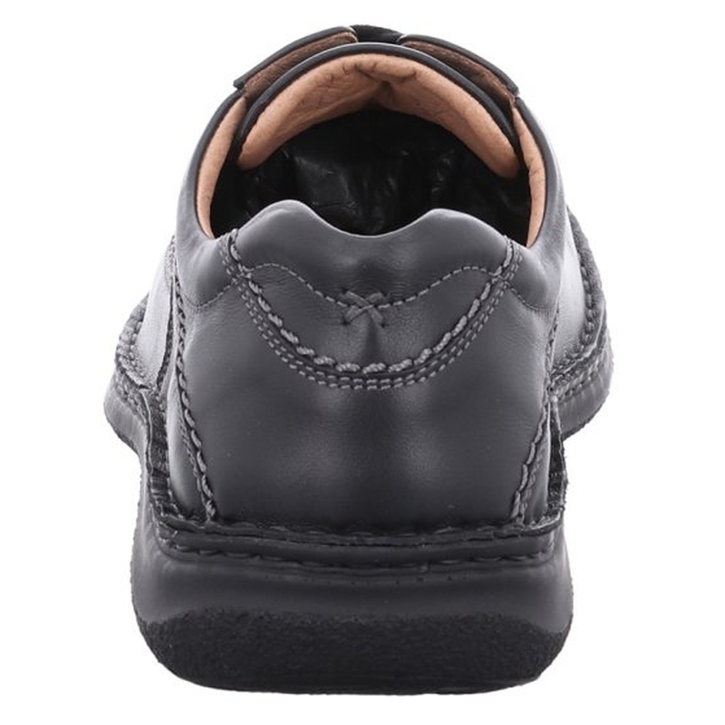 Pánské polobotky Josef Seibel Anvers 08 v černé barvě nabízejí ideální kombinaci pohodlí, praktičnosti a jednoduchého stylu pro každodenní nošení. Svršek z měkké usně je doplněn o dvě pružné vsadky po stranách, které usnadňují obouvání a zároveň zajišťují pohodlné držení boty na noze. Decentní prošívání a zaoblená špička vytvářejí nadčasový vzhled, který snadno sladíte s džínami, plátěnými kalhotami i ležérnějším outfitem do práce. Uvnitř boty se nachází měkká textilní podšívka a komfortní vyjímatelná stélka, vhodná i pro ortopedické vložky. Lehká a flexibilní PU podešev s jemným vzorkem zajišťuje bezpečný a pohodlný krok na různých površích. Josef Seibel Anvers 08 je ideální volbou pro muže, kteří hledají univerzální, nenápadnou a maximálně pohodlnou obuv na každý den.