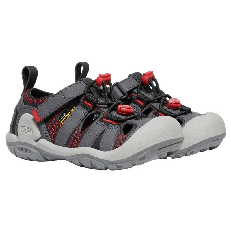 Dětské sandály KEEN Knotch Creek Youth v barvě magnet/red carpet jsou ideální pro aktivní děti, které potřebují pohodlnou a odolnou obuv na procházky, výlety nebo k vodě. Svršek je vyroben z prodyšného materiálu, který zajišťuje komfort i při delším nošení. Elastické šněrování umožňuje snadné obutí, zatímco regulovatelné pásky na suchý zip zajišťují bezpečné uchycení na noze. Podešev s dobrou trakci poskytuje stabilitu na různých površích, což je činí vhodné pro různé venkovní aktivity. Sandály jsou skvělou volbou pro děti, které hledají obuv, jež jim poskytne pohodlí, bezpečnost a flexibilitu.