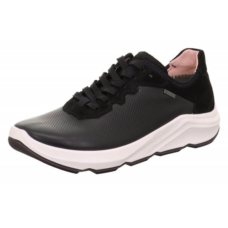 Tyto moderní dámské tenisky značky Legero v černém provedení nabízejí styl a pohodlí pro každodenní nošení. Vyrobeny z kvalitní usně, jsou navíc vybaveny technologií GORE-TEX®, která zajišťuje voděodolnost a prodyšnost, což udrží vaše nohy suché a v pohodlí i za nepříznivého počasí. Tenisky mají perforovaný design pro lepší cirkulaci vzduchu a lehkou, flexibilní podrážku, která poskytuje maximální komfort při chůzi. Klasické šněrování zajišťuje perfektní přizpůsobení noze, zatímco kontrastní bílá podrážka dodává teniskám moderní vzhled.