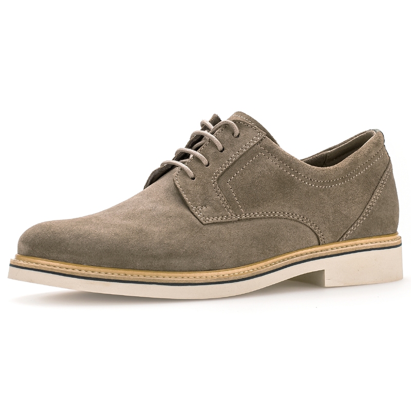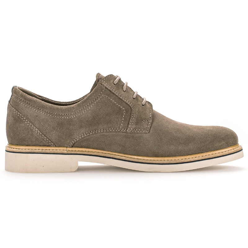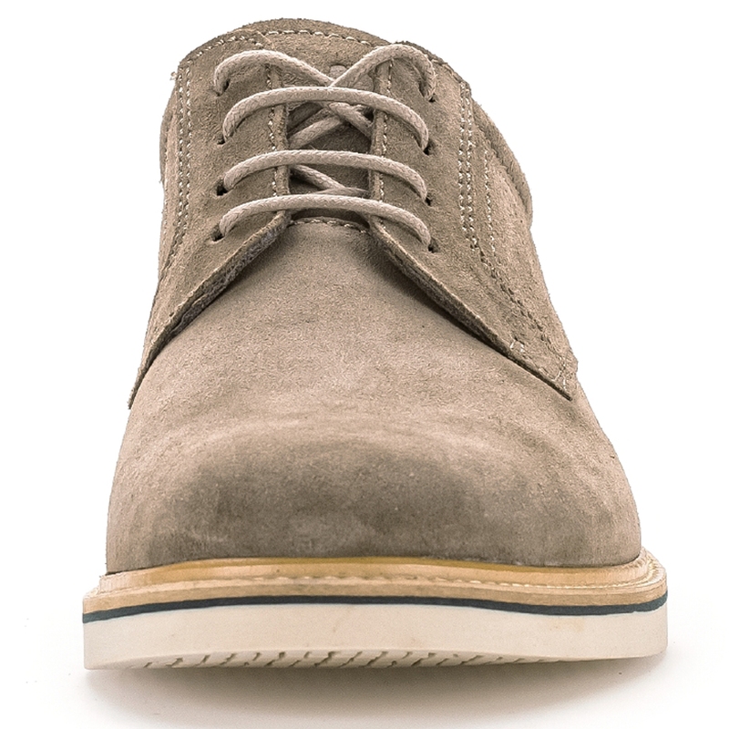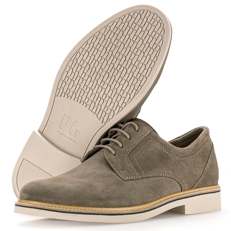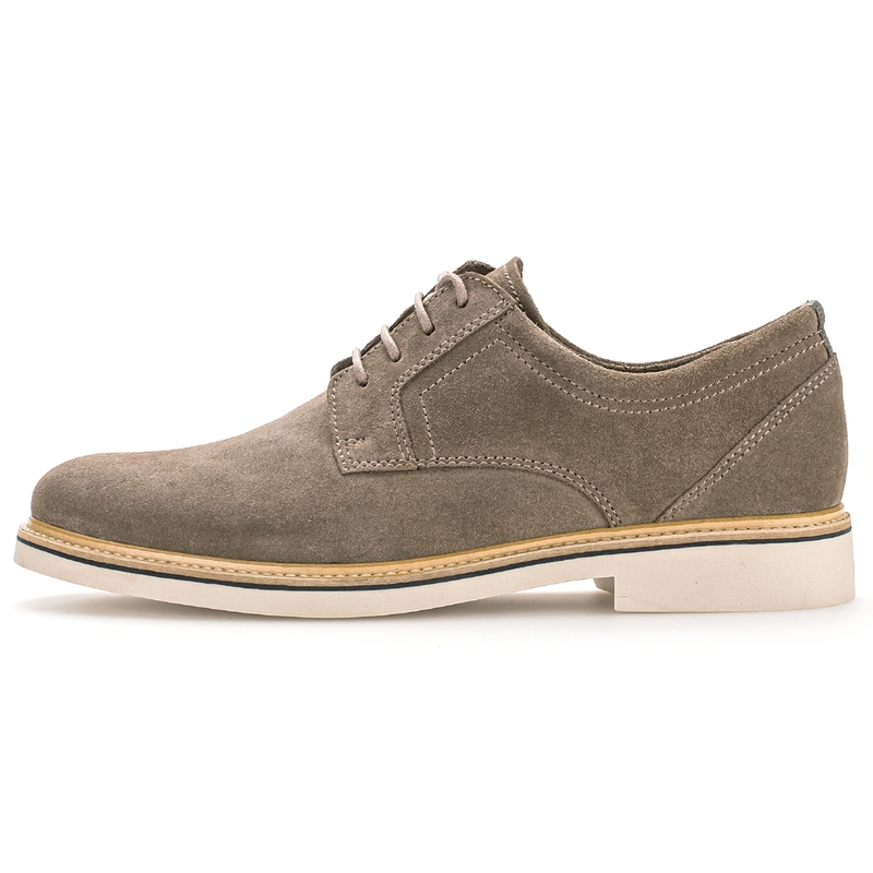 Pánské šněrovací boty Pius Gabor v béžové barvě jsou vyrobeny z kvalitní broušené usně, která dodává obuvi robustní a odolný vzhled. Design s kulatou špičkou a čistými liniemi zajišťuje univerzálnost a snadné kombinování s různými outfity.