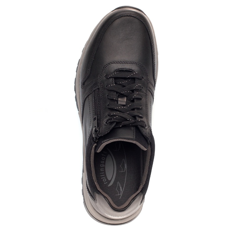 Pius Gabor 8000.14.09 je komfortní pánská obuv navržená pro každodenní nošení s důrazem na zdravý došlap a dlouhodobé pohodlí. Kvalitní kožený svršek v černém provedení je odolný, přitom příjemně měkký a dobře se přizpůsobuje tvaru chodidla. Praktická kombinace šněrování a bočního zipu umožňuje snadné obouvání a rychlé přizpůsobení, zatímco decentní sportovní linie dodává obuvi moderní vzhled.