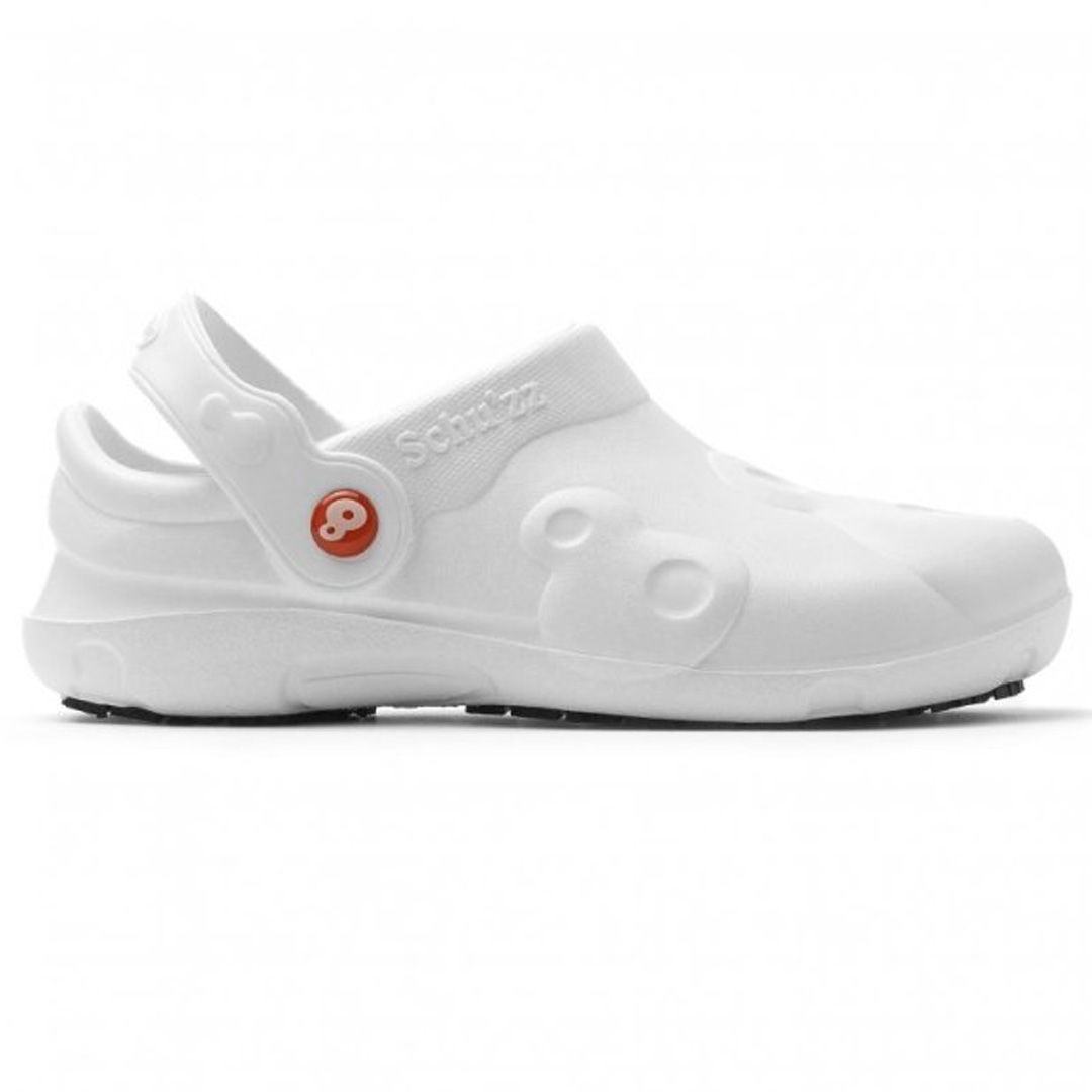 Obuv SCHU ZZ PRO 0047 v bílé barvě je dámská zdravotní obuv navržená pro maximální pohodlí během dlouhé pracovní směny i běžného nošení. Díky anatomicky tvarované stélce a měkkému polstrování chodidla boty dobře tlumí nárazy a podporují přirozený krok, což snižuje únavu nohou i zad. Svršek je vyrobený z kvalitního materiálu, který se snadno udržuje a umožňuje dobrou cirkulaci vzduchu, takže nohy zůstávají suché a komfortní i při celodenním nošení. Obuv má klasický sportovně-elegantní design, který se hodí jak do práce, tak na volný čas. Bílá barva dodává botám svěží a čistý vzhled, který se dobře kombinuje s různým oblečením.