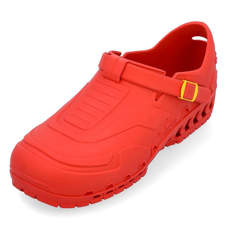 Obuv Sunshoes Advanced v červeném provedení je pohodlný a funkční model pracovní obuvi, který je navržen tak, aby poskytoval komfort i během náročných pracovních dní. Svršek kombinuje kvalitní materiály s prodyšnými prvky, které pomáhají udržet nohy svěží a suché i při delším nošení. Ergonomický střih a měkčená stélka zajišťují příjemný došlap a podporu chodidla, díky čemuž je obuv vhodná pro všechny, kteří tráví při práci delší dobu na nohou. Podešev nabízí stabilní a bezpečný krok na různých površích a díky odolnému zpracování je obuv vhodná i pro časté používání. Pantofle mají sportovně-praktický vzhled, který lze snadno kombinovat s pracovními i volnočasovými outfity, takže jsou ideální volbou pro zákazníky hledající spojení funkčnosti, pohodlí a moderního designu.