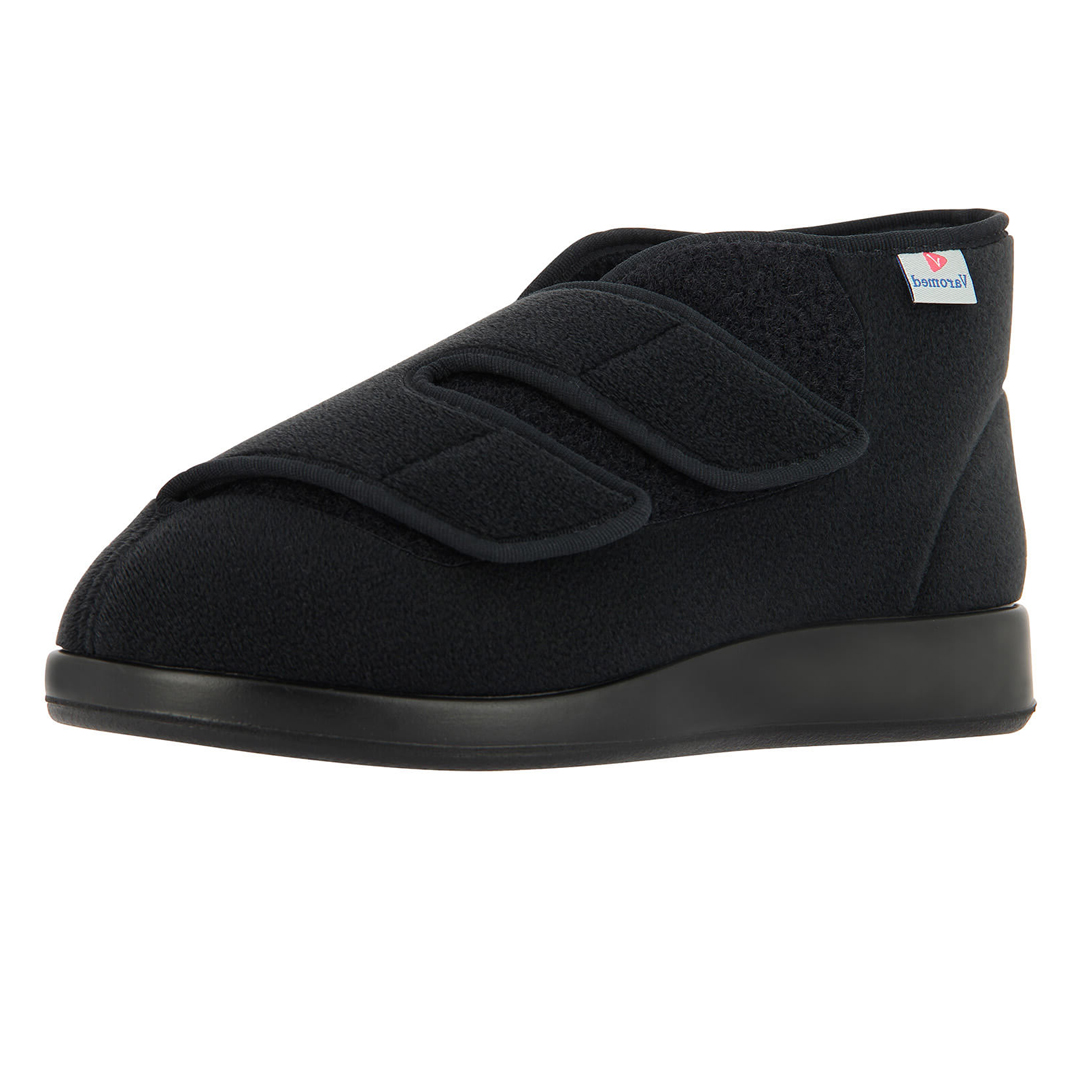 Tato vyšší zdravotní obuv značky Varomed v černém provedení je ideální pro osoby s vyššími nároky na komfort, přizpůsobení a ochranu nohou. Díky dvěma širokým páskům na suchý zip umožňuje velmi snadné nazouvání i vyzouvání, a zároveň nabízí možnost přesného nastavení podle objemu nohy – což ocení zejména lidé s otoky, deformitami, bandážemi nebo diabetickými problémy. Měkký textilní materiál obuvi je příjemný na dotek a zajišťuje optimální pohodlí během celodenního nošení.