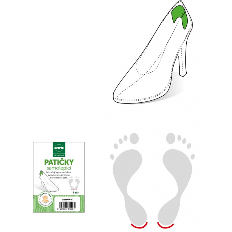 Zabraňují vyzouvání obuvi. Vyrovnávají a změkčují nerovnosti v patě. Měkká přírodní useň na povrchu, samolepicí fólie. Přírodní hovězinová useň se zdrsněným povrchem, výplň ze šlehaného latexu a samolepicí fólie tvoří jednoduchou pomůcku se snadnou aplikací. Nejčastější využití je k zabránění vyzouvání obuvi, prevence vzniku otlaků v patě, vyrovnání nerovností v patní části obuvi. Tvar patičky koresponduje s tvarem patní části obuvi. Nákres v přibalovaném letáku znázorňuje ideální umístění patičky.