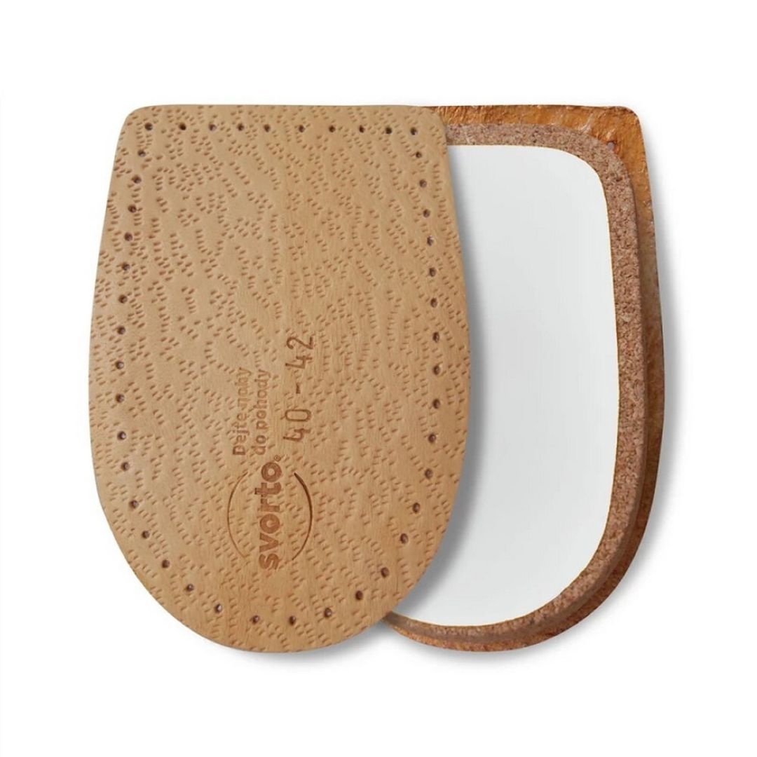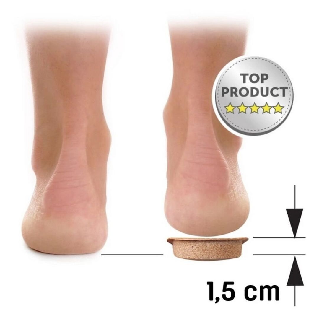 Korekční podpatěnka z korku je určena k vyrovnání rozdílu délky dolních končetin v rozmezí 1–1,5 cm a ke zlepšení stability při chůzi. Pomáhá korigovat nerovnoměrné zatížení pohybového aparátu, snižuje jednostranné přetěžování a přispívá k většímu komfortu při každodenním nošení obuvi. Je vhodná jako podpůrná pomůcka při doporučení odborníka i při běžném používání. Podpatěnka je vyrobena z přírodního korku, který je lehký, pevný a dobře tlumí došlap. Díky svému tvaru stabilně drží v obuvi a umožňuje plynulý přechod zatížení chodidla. Lze ji použít ve většině typů uzavřené obuvi, snadno se vkládá do boty a představuje praktické řešení pro korekci délkové nerovnosti a zvýšení pohodlí při chůzi.