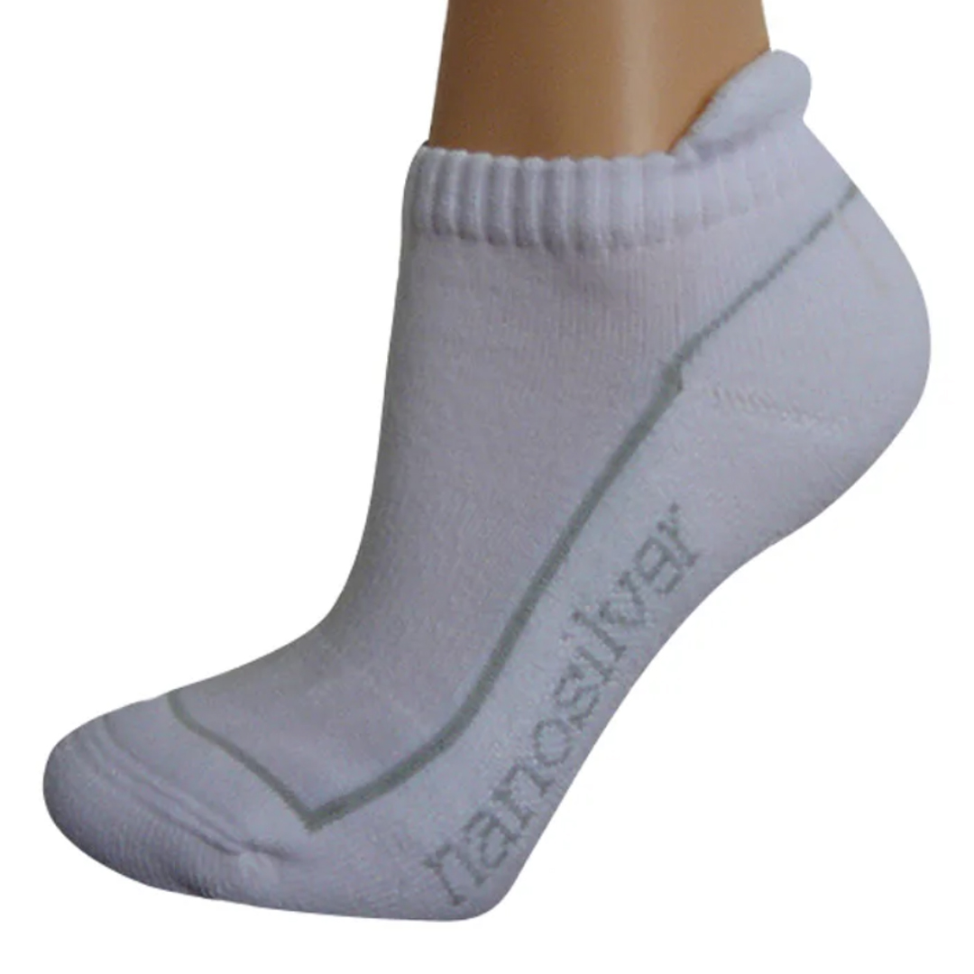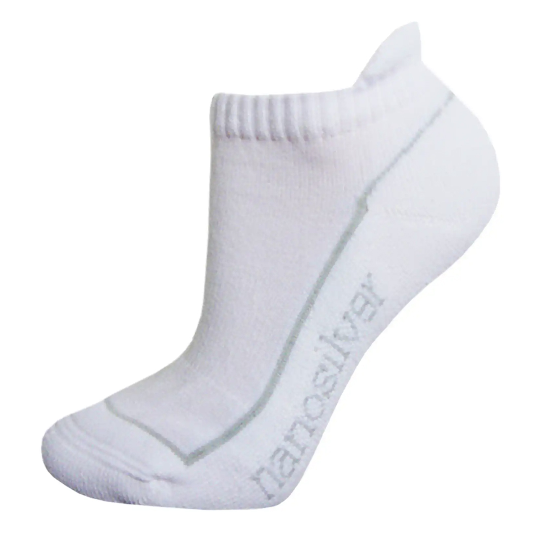 Kotníkové ponožky Nanosilver jsou tenké a prodyšné ponožky vhodné pro každodenní nošení i do uzavřené obuvi. Díky vláknům se stříbrem mají antibakteriální účinky, které pomáhají omezit množení bakterií a snižují nepříjemný zápach nohou. Materiál efektivně odvádí vlhkost od pokožky, takže nohy zůstávají suché a komfortní i při delším nošení nebo mírné zátěži. Tento model v bílé barvě se dobře kombinuje s různými typy obuvi. Ponožky nabízejí pohodlí, hygienu a praktičnost pro každodenní použití.