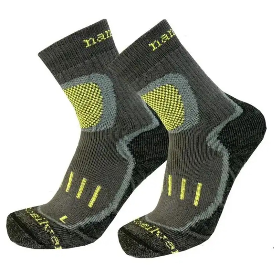 nanosilver® - antibakteriálnost Do vláken polyesteru jsou pevně uchyceny molekuly stříbra. Stříbro je známo pro své antibakteriální účinky - eliminuje bakterie vznikající v potu, které jsou zdrojem zápachu. Jakmile ponožky uschnou, nesmrdí. Tento proces však není nekonečný. Po prvních použitích je zápach potlačen, po mnohonásobném použití se odér může objevit. Proto je potřeba i tyto materiály prát. V porovnání s běžnými ponožkami je však rychlost a intenzita odéru nesrovnatelně nižší.