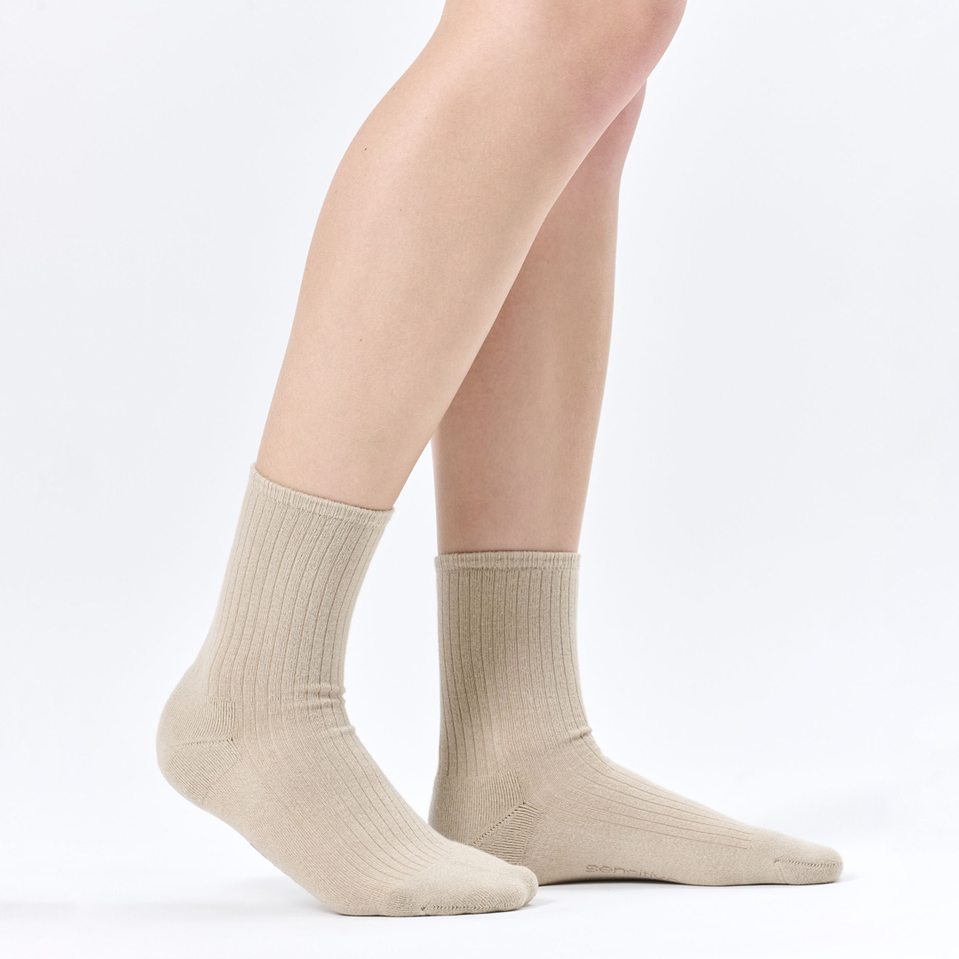 Sensitive ponožky v béžovém provedení jsou navrženy s ohledem na maximální šetrnost a pohodlí při každodenním nošení. Neutrální barva působí nenápadně a snadno se kombinuje s různými typy obuvi, takže jsou vhodné jak do domácího prostředí, tak i pro běžné vycházky či celodenní nošení.