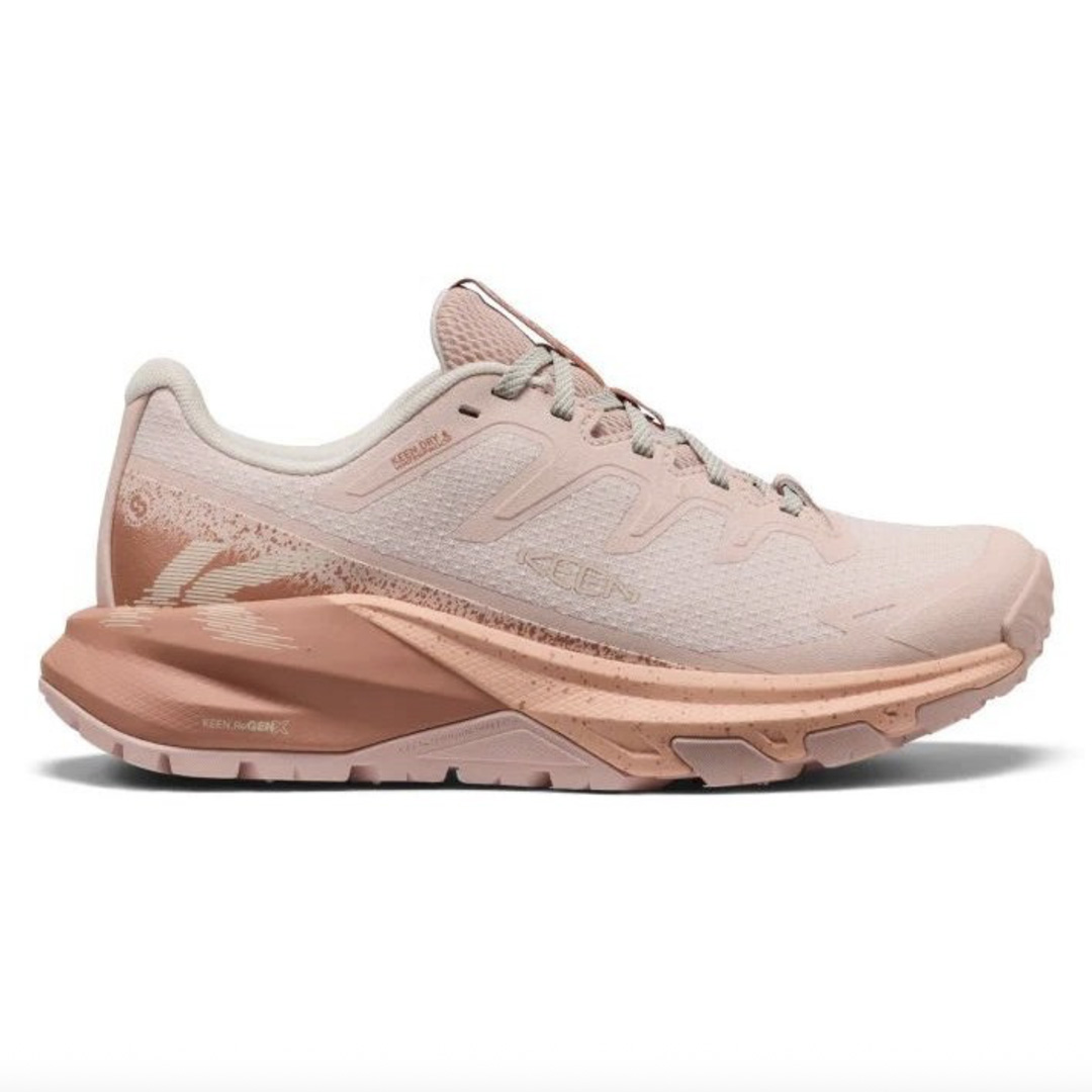 Dámské trekové boty Keen Targhee Apex Waterproof v barevném provedení cameo rose / peach fuzz jsou navrženy pro aktivní pohyb v přírodě i každodenní outdoorové využití, kde oceníte jejich lehkost, odolnost a vysoký komfort. Svršek je vyroben z pevné syntetické síťoviny doplněné o odolné TPU překryvy, které chrání namáhané části a zvyšují životnost obuvi . Díky voděodolné a prodyšné membráně KEEN.DRY zůstávají nohy v suchu i při nepříznivém počasí, zatímco vnitřní síťovaná podšívka podporuje cirkulaci vzduchu a příjemné klima uvnitř boty . Vyjímatelná pěnová stélka a anatomicky tvarovaná klenba přispívají k pohodlí při delším nošení a zároveň umožňují individuální přizpůsobení. Lehká mezipodešev KEEN.ReGEN+ nabízí vysokou návratnost energie a efektivní tlumení nárazů, což snižuje únavu při chůzi a podporuje dynamický pohyb . Gumová podešev KEEN.ALL-TERRAIN s vícesměrným vzorkem zajišťuje spolehlivou trakci na různorodém povrchu, zatímco stabilizační klenek poskytuje jistotu i v náročnějším terénu . Typický střih Original Fit nabízí dostatek prostoru v oblasti prstů pro přirozený pohyb chodidla . Model Targhee Apex Waterproof je ideální volbou pro ženy, které hledají technicky propracovanou, pohodlnou a odolnou obuv pro turistiku, výlety i aktivní každodenní nošení.