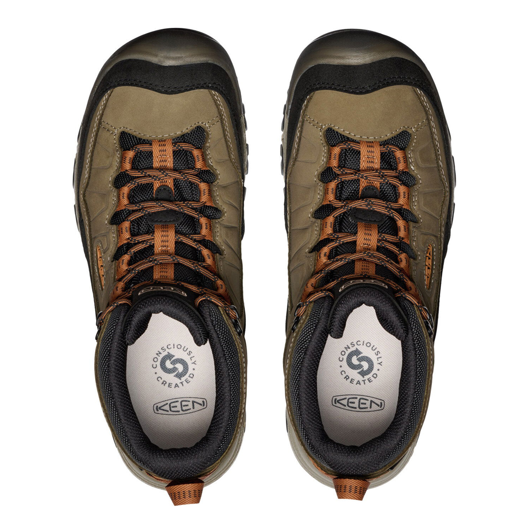 Obuv Pánské Keen Targhee IV Mid WP Men je robustní pánský model turistických bot navržený pro pohodlné a spolehlivé nošení v přírodě i v náročnějším terénu. Svršek je z kvalitní nubukové kůže a ikonický střih poskytuje dostatek prostoru pro prsty, což ocení i ti s širším chodidlem. Mezipodešev s technologií LuftCore tvořená vzduchem vstřikovanou pěnou zajišťuje výborné odpružení a dlouhotrvající pohodlí, zatímco polstrovaný jazyk a límec přispívají k pohodlnému pocitu během túr. Boty jsou vybavené voděodolnou a prodyšnou membránou KEEN.DRY, která pomáhá udržet nohy v suchu i v dešti, a stabilní podešev s vícesměrnými výstupky zaručuje dobrý záběr na různém terénu. Konstrukce se stabilizačním klenkem S3 zvyšuje tuhost a podporu při chůzi po nerovném terénu, takže model dobře funguje i při delších výšlapech. Targhee IV Mid WP je všestrannou volbou pro ty, kdo hledají turistickou obuv s komfortem, odolností a univerzálním outdoorovým výkonem.